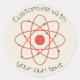 Maßgeschneiderte Rundaufkleber mit gekrümmtem Text und Atom-Struktur, ideal für jedes wissenschaftlich-thematische Ereignis.