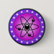 Thema Wissenschaft Ein kreisförmiges Bild mit dem Symbol des Atoms im Inneren. Ein rosa Hintergrund kontrastiert hell mit dem schwarzen Symbol. Ein lila Rand mit weißen Sternen kreist um die Abbildung herum. Ein cooles Bild für Geeks und Naturwissenschaftler.
