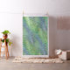 Ein moderner Begriff aus der Mitte des Jahrhunderts: überlappende atomare Formen überlagern ein digitales Crosshatch in leuchtenden Grüntönen und frischer Blues.