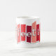 Genießen Sie Ihre retro Art der NachmittagsKaffeepause mit dieser Mitte des Jahrhunderts inspirierten Kaffee-Tasse mit grafischen Bildern der Atomart in den Schatten des Rotes und des Rosas. Die Tasse liest "coffeetime" in einem retro Restaurantart-Schriftart und Spaßfarben, die Sie in Zeit zurücknehmen.