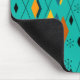 Dieses Mauspad hat ein modernes atomares Design von Diamanten, und Sternexplosionen auf einem türkisfarbenen Feld.