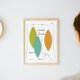 Dieses klassische, moderne Druckwerk aus der Mitte des 20. Jahrhunderts zeichnet sich durch die Farben aus, die Mitte des 20. Jahrhunderts beliebt sind - türkisblaue, orange und apacado grüne Surfbretter. Schwarze Linien und eine Sternexplosion runden dieses Design ab. Es ist nicht nur für ein Retro-Haus, sondern auch für eine moderne Dekoration ideal.