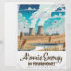 Atomenergie "für Ihre Zuhause" Retro-Cartoon im Stil der 50er Jahre mit einer nuklearen Power-Station.