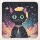 Atomfuturistische, kosmische schwarze Katze im Mon Rechteckiger Pappuntersetzer