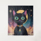 Atomfuturistische, kosmische schwarze Katze im Mon Wandteppich
