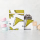 Atomische Formen, schwarz und gelb auf schlichtem weißem Hintergrund, groß. Auch in 2 weiteren Mustergrößen erhältlich.