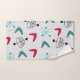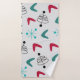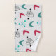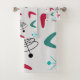 Cet ensemble de serviettes a un design moderne atomique du milieu du siècle de formes boomerang, antennes et starbursts en turquoise, magenta, bleu et noir.