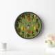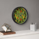 Diese Wanduhr hat ein modernes Diamantendesign aus der Mitte der 70er Jahre und Sternexplosionen auf einem grünen Feld.