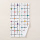 Dieses Handtuchhandtuch-Set hat ein modernes Design eines atomaren Gitters mit Kreisen in Retrofarben. Woll eine andere Farbe? Nachricht.