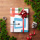 Dieses Umhüllungspapier hat ein Design von Rechtecken, die an einem Ende in groben Orange-, Grün-, aquamarinen, lila, blauen, rosa und gelben Farbtönen gedehnt werden, wobei sie von atomaren Linien überragt werden.