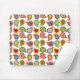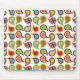 Dieses Mauspad hat ein modernes Design aus Pisleys, die in Retrofarben übereinander angeordnet sind, wobei eine Ebene ein atomares Muster aufweist.