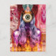 Schöne, skurrile, surreale und trippige Collage einer seltsamen, ansonsten weltlich weiblichen Einheit in Regenbogenfarben.