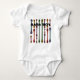 Dieser Baby-Bodysuit hat ein modernes Design atomarer Linien, mit "Federn" an beiden Enden und einer Kontur um jedes einzelne.