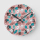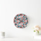 Diese Wanduhr hat ein modernes atomares Design aus ovalen Konturen mit kleinen Kreisen und soliden bunten Ovalen in ihnen.