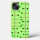 Dieses Handy Gehäuse hat ein modernes Design von schwarzen vertikalen Linien mit braunen vertikalen Linien und grünen Kreisen.