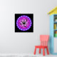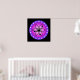 Thema Wissenschaft Ein kreisförmiges Bild mit dem Symbol des Atoms im Inneren. Ein rosa Hintergrund kontrastiert mit dem schwarzen Symbol. Ein lila Rand mit weißen Sternen kreist um die Abbildung herum. Ein cooles Funky-Image für Geeks und Naturwissenschaftler.