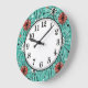 10,75" runde Acrylwand mit einem 50er-Bild von Weiß und Rot mit schwarzen Sternen-Jacken auf Türkis, und einer Uhr mit großen, lesbaren Zahlen in einem weißen Kreis mit schwarzem Rand. Sehen Sie sich die gesamte Sammlung der Nifty 50er Clock im DECOR an. | Uhrenabschnitt. Dieses Produkt ist nicht mit dem ursprünglichen Urheberrechtsinhaber verbunden oder verbunden.