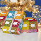 Dieses Verpackungspapier hat ein modernes Design von Quadraten mit abgerundeten Rechtecken mit Antenne in modernen Farben Mitte des Jahrhunderts. Das gleiche Design in verschiedenen Farben gewollt? Nachricht.