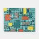 Modernes geometrisches abstraktes Kunstdesign mit Linien, Quadraten und Rechtecken in Türkis, aquamarin, Orange und Gelb.