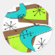 Atomic Ära Inspirierte Boomerang Design in aquamarin, Limon und schokoladenbraun. Farben, die für den Zeitraum relevant sind. Einzigartige Produkte für Zuhause, Büro und T - Shirt.