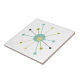 Diese fabelhafte, moderne, dekorative Kachel weist eine atomare Sternexplosion in den Farben Türkis Blau, Avocadogrün, Gelb und Schwarz auf. Dies wird eine farbenfrohe Ergänzung zu Ihrem Fliesenprojekt sein!