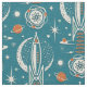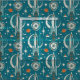 Meine originelle Vektorgrafik einer stilisierten Raumszene, inspiriert durch die atomischen 50er und 60er Jahre, in aquamarin, dunkelorange, antiken Weiß und minziösem Aqua, mit einer Vielzahl von Texturen. ©Christine Duffield 2022