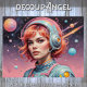 Eine schicke Darstellung einer Frau mit futuristischen Kopfhörern, Set vor einem lebendigen rosa Hintergrund. Dieses vom Atomzeitalter inspirierte Design verbindet moderne Ästhetik aus der Mitte des Jahrhunderts mit retrofuturistischen Elementen. Abstrakte Raummotive und dynamische Formen rufen die Aufregung des Weltraumzeitalters hervor und spiegeln den Optimismus und die Faszination der Ära für den Kosmos wider