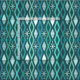 Ein Retro-Kunstmuster der 50er Jahre mit geometrischen Hohldiamanten und Sternen im Stil der Atomzeit. Die Farben sind aquamarin, türkis, aquamarin und ozeangrün.