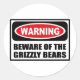 Avertissement ATTENTION À L'OURS GRIZZLY Sticker vous pouvez customiser à www.WarningSignShirts.com et comporte un panneau rouge et noir d'avertissement et ATTENTION AUX OURS GRIZZLY en lettres noires en gras pour avertir le monde. Vous pouvez également customiser votre propre panneau d'avertissement Sticker avec le texte que vous voulez.