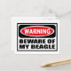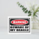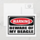 Avertissement Méfiez-vous de ma carte postale BEAGLE vous pouvez customiser à www.WarningSignShirts.com et comporte un panneau d'avertissement rouge et noir et Méfiez-vous de mon BEAGLE en lettres noires en gras pour avertir le monde. Vous pouvez également customiser votre propre panneau d'avertissement Carte postale avec le texte que vous voulez.