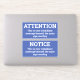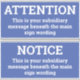 Signes d'avertissement de l'usine ou du bureau. Deux avis d'attention comme autocollants. Modifiez le libellé pour afficher votre propre message sur chacun. Taille moyenne. 6 pouces de large.