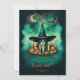 Attractive & Mystical Halloween Witch Conjures Enchanting Spells Amid Glowing Candles And Vibrant Pumpkins Under A Moonlit Teal Sky Bridesmaid Proposal Cards.