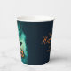 Add a magical and charming touch to your party with our disposable Attractive & Mystical Halloween Witch Conjures Enchanting Spells Amid Glowing Candles And Vibrant Pumpkins Under A Moonlit Teal Sky paper cups. This vibrant design features a mystical witch casting spells under a teal moonlit sky, surrounded by glowing candles and vibrant pumpkins, setting the perfect mood for your Halloween celebrations.