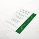 Mit dieser Hochzeitseinladung, die einen smaragdgrünen Rahmen auf der rechten Seite mit einem Muster aus Teströhren, DNA-Strängen, Beakern, Planetenmodellen des Atoms und Coffeinmolekülen, die in echter Folie gedruckt sind, verziert, bringt Sie Touch von geeky fun. Die links Kartenseite bietet viel Platz für alle Details für Ihr wissenschaftlich-thematisches Event mit Beispieltexten, die an Ihre Bedürfnisse angepasst werden können. Ein großes smaragdgrünes Atommodell beendet die Dinge auf der Rückseite, um eine niedliche Endnote zu schaffen. Diese Einladung wird mit allen anderen Attraktiven Kräfte in Green Produkt, sodass Sie leicht Ihre Veranstaltung so koordiniert wie Sie wollen.