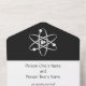 Mit dieser einmaligen Einladung und der RSVP-Karte können Sie Ihre Veranstaltung mit Touch und Freude erleben. Im Inneren finden Sie ein weißes Planetenmodell des Atoms auf einem schwarzen Hintergrund oberhalb eines Abschnitts mit Beispieltext, der für Ihren speziellen Tag angepasst werden kann. Im unteren Bereich des Einladens befindet sich ein herausnehmbares, postkartengroßes Stück, das einen Beispieltext über einem onyxen schwarzen Rand mit einem Muster aus Teströhren, Beakern, Koffeinmolekülen, Atommodellen und DNA-Strängen, die unten verstreut sind, enthält. Draußen befindet sich eine ähnliche Grenze von Wissenschaftssymbolen auf schwarz unter den Bereichen, in denen man Briefmarke, Standard und Rücksendeadressen für die Einladung als Ganzes und für den UAWG, der zurückgegeben werden kann, hinzufügen würde. Die Klappe, die benutzt wurde, um zu falten und Siegel der Karte hat einen Single Planetales atomares Modell auf einem tiefen onyxen Hintergrund mit einem Beispiel Set von Initialen, die Sie anpassen können für eine endgültige persönliche Touch, die zeigt Ihre Liebe für die Wissenschaft und einander. Achten Sie darauf, die Erholung der Attraktiven Kräfte in Black Set für andere koordinierende Produkte, einschließlich Rücksendeadressen-Aufkleber, Karo.