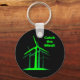Un porte - clé noir avec "Catch the Wind !" et un graphique d'éoliennes modernes en vert vif.