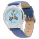 Kinderuhr aus Edelstahl mit blauem Lederarmband