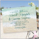 Arrière - plan de plage faire-part de mariage avec mariée et marié invitant les invités. Inclure les noms complets du couple dans le script bleu turquoise. Choisissez des mises à niveau sur papier ou téléchargez la conception pour imprimer la vôtre.