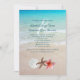 Tropical, invitations de mariage à la plage. Une étoile de mer, un dollar de sable et une fleur de plumeria rose décorent de belles papeteries design avec un arrière - plan de plage. Les parents de la mariée et du marié sont mentionnés en haut. Je serai heureux de changer le libellé pour vous.