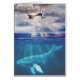 Baleine sous l'eau avec des dauphins sauteurs au-dessus et la lumière de la lune brillant à travers les nuages dans le ciel, de la peinture à l'huile de Daniel B. Holeman.