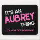 Es ist eine Aubrey Sache, die Sie nicht verstehen würden - Typografie mit Vornamen in leuchtend rosa Schriftart in gemalten Pinselstrichen und bedrückte Graffiti-Stilschriften.