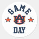 Dieser anstrengende Rundaufkleber zeigt stolz die Unterstützung für die Auburn University am Spieltag! Es zeigt das ikonische Auburn "AU" Logo, das in seiner Mitte deutlich sichtbar ist und in traditioneller orange und blau gehalten ist. Oben und unterhalb des Logos werden die Worte "GAME" und "DAY" mutig in blauer, gewölbter Schrift präsentiert, die die Spannung des Spieltages perfekt einfangen. Zwei lebhafte orangefarbene Sterne mit blauen Konturen flankieren das Logo "AU" und ergänzen das energetische Display. Dieses wirkungsvolle und erkennbare Design ist ein idealer Weg, um die Treue zu den Auburn Tigers auf jeder Fläche zu zeigen.
