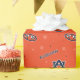 Dieses Design-Muster zeigt das emblematische "AU"-Logo der Auburn University in fett marineblau mit orangefarbener Kontur. Das Wort "Auburn" erscheint in stilisierten, hochglänzenden marineblauen Buchstaben mit orangefarbenen Akzenten, die einen markanten Kontrast zum weißen Hintergrund bilden. Eine zusätzliche Grafik der Augen eines Tigers, die in einer ovalen Form mit orangefarbenem Rand eingebettet ist, verstärkt Auburns ikonisches Maskottchen. Im Design sind minimalistische Formen der Sternexplosion und kleine Punkte in marineblau untergebracht, was eine festliche und dynamische Touch ergänzt, die den Geist und die Farben der Universität ergänzt.
