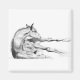 Eine Schwarz-Weiß-BIRO-Abbildung eines jungen Foals, der sich hinsetzt, erkennt dann, dass er einen Juckreiz am Hinterbein erreichen muss. Von der BIRO Künstlerin ~ Robin Cox.