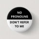Un design simple et drôle avec le texte "no pronouns, don't reference to me", en noir et blanc :)