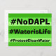 #NoDAPL, #WaterisLife, et #ProtectCleanWater écrits sur un arrière - plan de différentes nuances de vert. #NoDAPL représente le mouvement en opposition à la construction du Dakota Access Pipeline. De nombreux pipelines fuient, ce qui entraîne une contamination de l'approvisionnement en eau et des terres qui nuisent à toute vie. Il est impératif de protéger l'eau potable. #ProtégerEauPropre