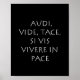Audi vide tace ist vis vivere im Tempo. Benutze deine Ohren und Augen, aber halte deine Zunge, wenn du in Frieden leben würdest. Ein lateinisches Zitat von Weisheit und Philosophie, das heute noch gültig und wahr ist.