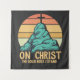 Auf dem Solid Rock I Stand ist dieses Christliche Design mit einem Reto-Sonnenuntergang mit einem Christlichen Kreuz- und Text-Sprichwort "On Christ the Solid Rock I Stand" ausgestattet.