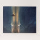 Surreales Segelboot zwischen den Sternen segelt in die entfernten Wolken.