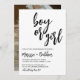 Es ist Zeit, das Geheimnis aus der Tasche lassen und Ihre besondere Ankündigung zu machen - Junge oder Mädchen? Unsere moderne Gender-Enthüllung Baby Dusche Einladung ist perfekt für den Anlass! Dieses polierte Design zeichnet sich durch eine schwarz-weiße Palette aus, die einen zeitlosen Look schafft. Geben Sie Ihre besonderen Neuigkeiten stilvoll und laden Sie Ihre Freunde und Familie ein, den großen Tag zu feiern!